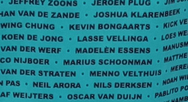 Een T-shirt met het logo van 'Freezing in Frylân' en op de achterkant de namen van alle deelnemers.